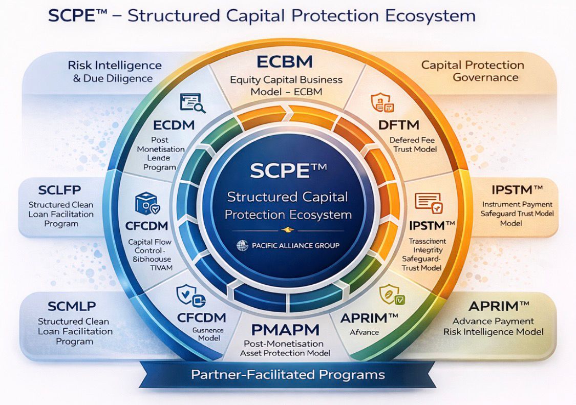 Built on the foundation of PAG’s Structured Capital Protection Ecosystem (SCPE™), CCGN™ enables global expansion through a controlled and compliant model — ensuring that all capital-related engagements are conducted under centralised governance, fiduciary oversight, and strict procedural discipline.