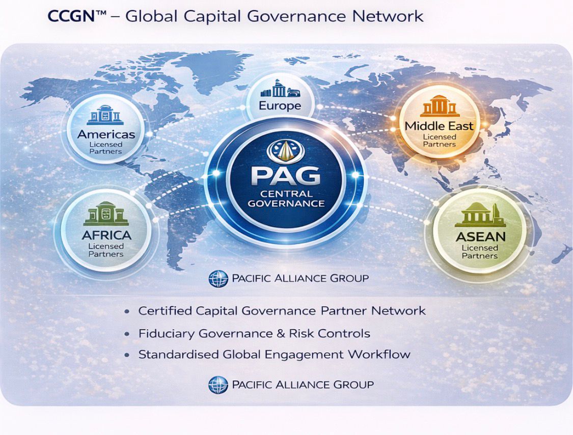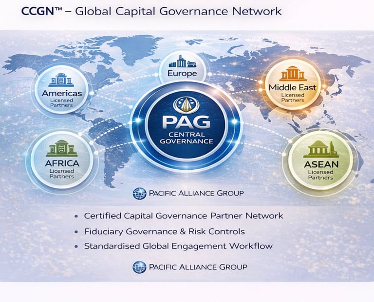 The PAG Global Capital Governance Network (CCGN™) is a structured international framework designed to institutionalise disciplined capital governance, transaction integrity, and capital protection practices across multiple jurisdictions.